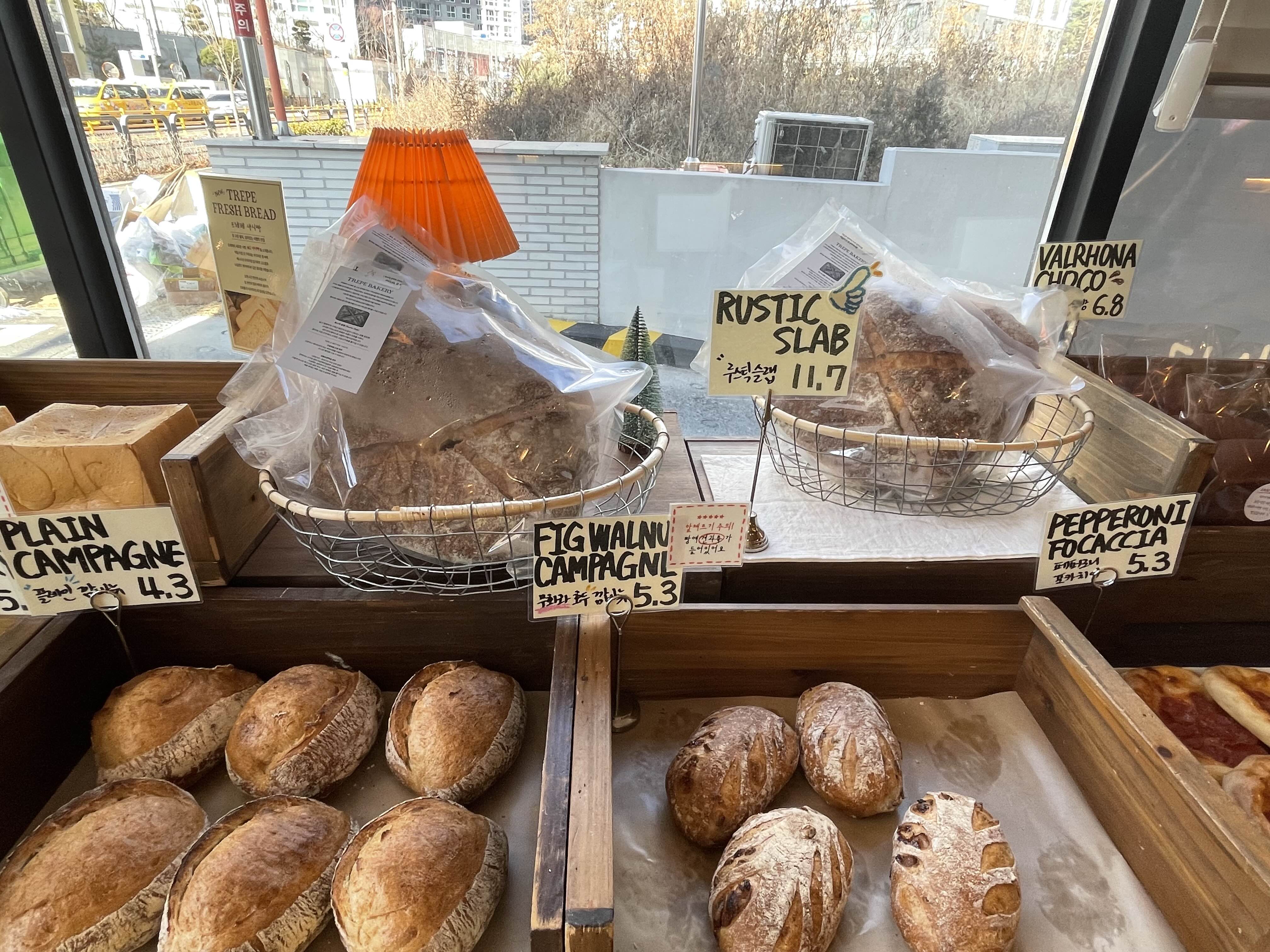 1호점은 소금빵 , 포카치아 등 식사빵이 있고